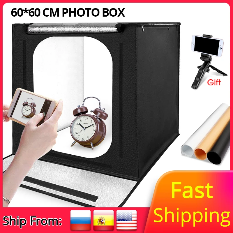 Travor 40*40/60*60cm Folding Photo Studio Softbox Lightbox LED Light box tabletop Shooting foldable only US $40.99