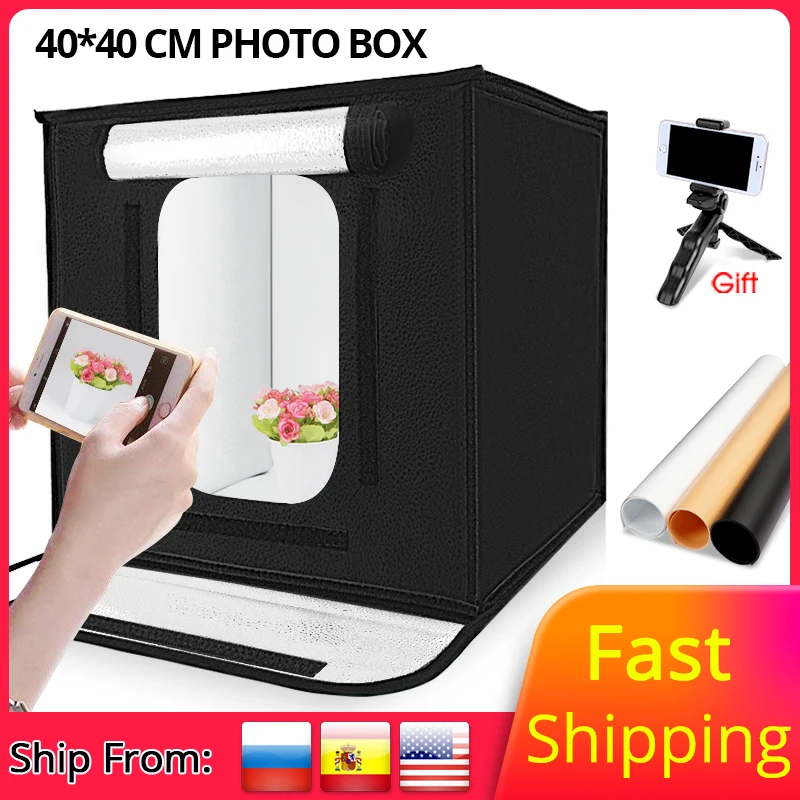 Travor 40*40 cm LED Photo box Photo Studio lightbox tabletop Shooting foldable Tent photobox with dimmer led light : Click here