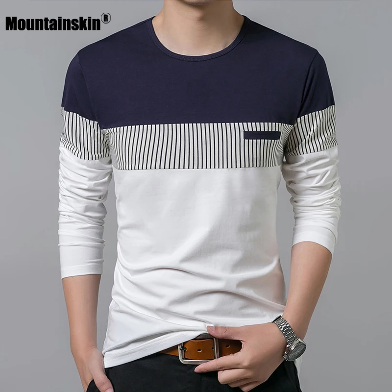 Special For You Mountainskin 2020 New Men's Autumn Spring Slim Tee Shirts Men Casual Stitching Color Sports Comfort